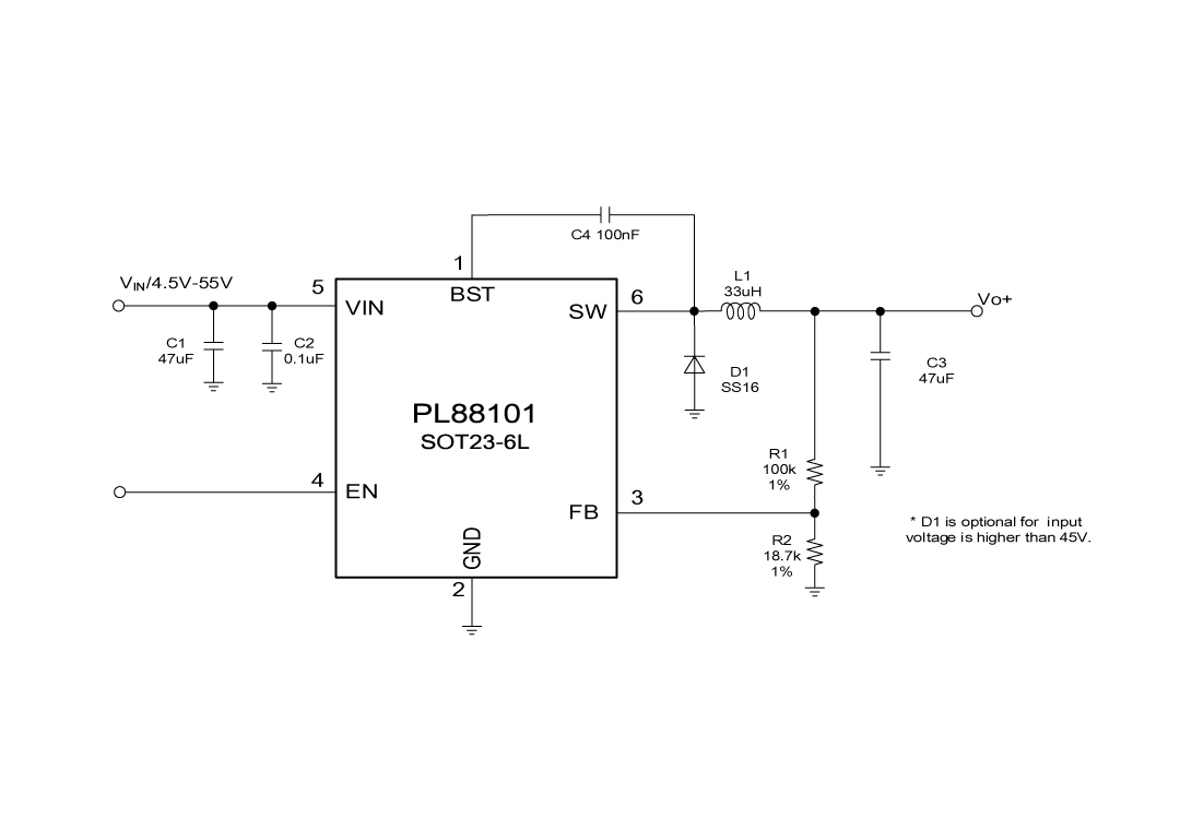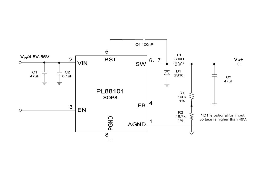 PL88101是一款55V高壓同步降壓轉換器 SOT23-6L封裝: SOP8封裝: