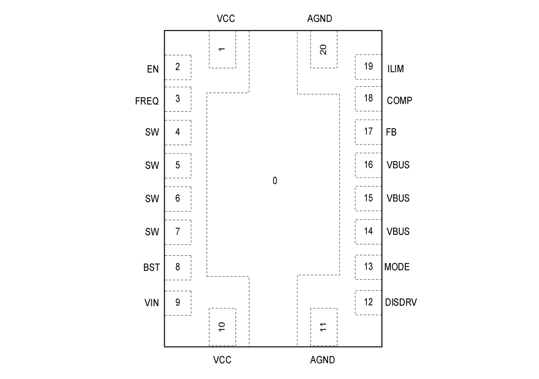 19 | ILIM | 可調理的高壓側場效應晶體管(LSFET)峰值電流限定。需毗連一個電阻到摹擬地(AGND) |