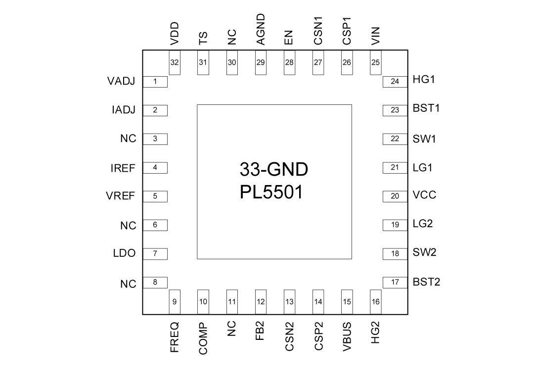 32 | VDD | 5.4V為PL5501節制焦點電壓 |