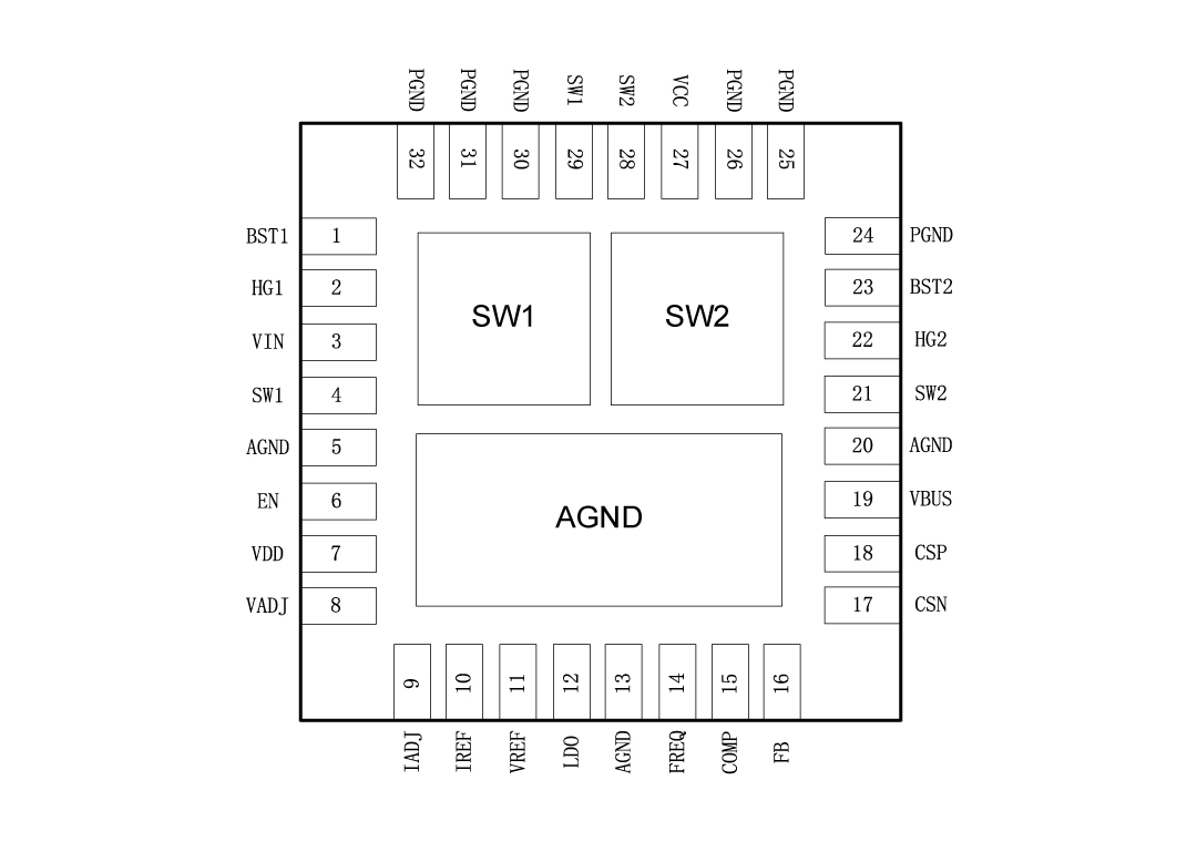 23 | BST2 | 用于高側場效應管驅動器的升壓引腳 2 |