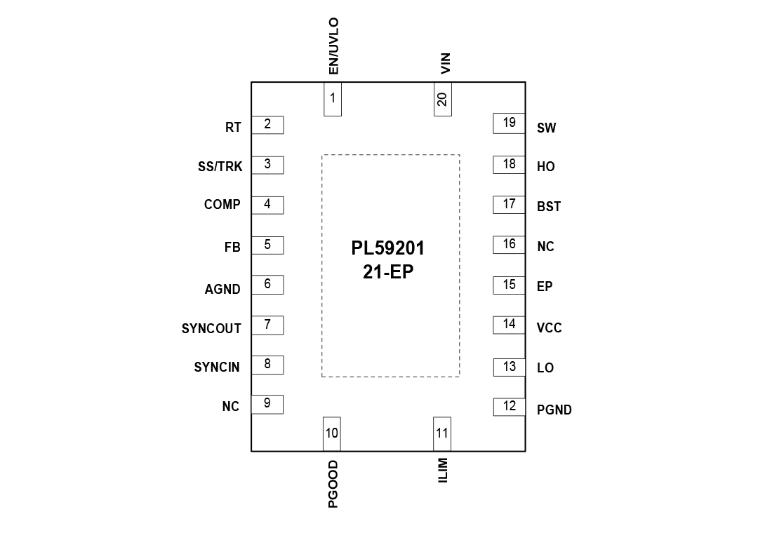 7 | SYNCOUT | 同步輸出。邏輯輸出供給一個與高側FET門驅動旌旗燈號相位相差180°的時鐘旌旗燈號。將主PL59201的SYNCOUT毗連到第二個PL59201的SYNCIN引腳,以便以不異的頻次操縱兩個節制器,并完成180°交織的高側FET開關導經由進程渡。注重,當節制器從一個差別于由RT電阻設置的自運轉頻次的內部時鐘中操縱時,SYNCOUT引腳不會供給180°交織。 |
