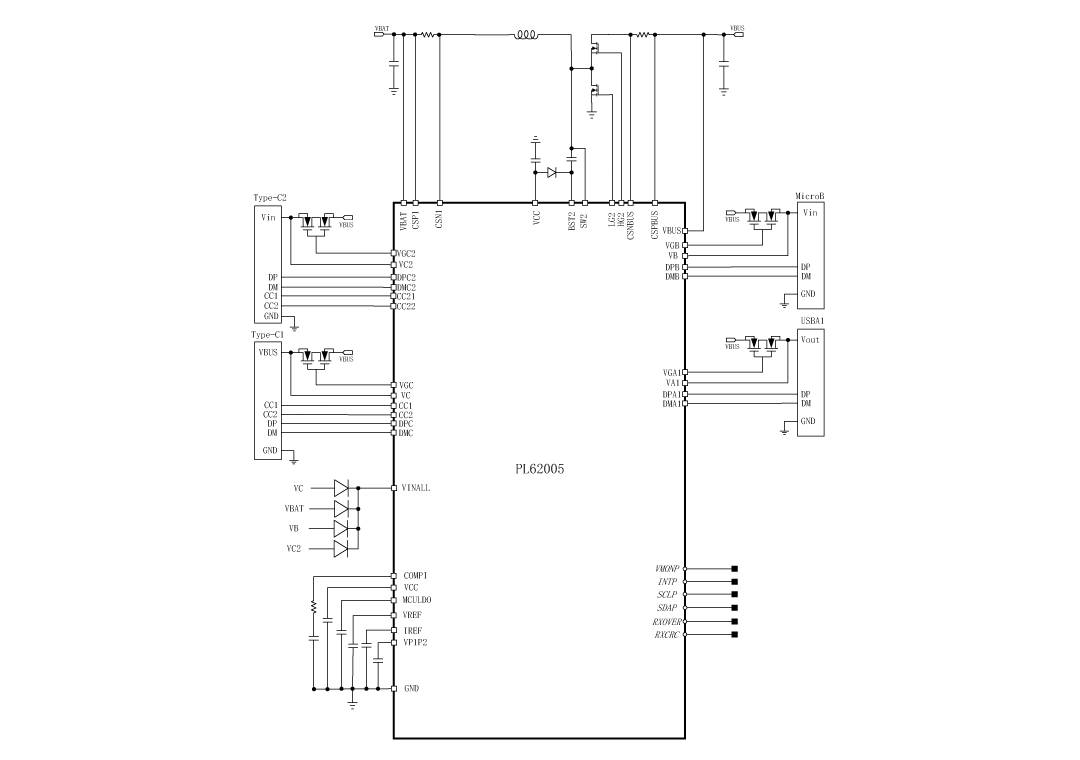 PL62005是一款種款高效率的的關聯雙線穩壓/升壓快速充小家電,集都是飛速快速蓄電和談。它是一款種個作用與好處周到且矯捷的穩壓/升壓快速充小家電手機平臺,專為大居多具有 Type-C 端口號設置設置并撐持 PD 和談的飛速快速蓄電合理利用率而總體目標。 PL62005市場機制 I2C插口便與MCU通信技術,為電動車充電器和數據傳輸線接線鼻子市場機制超常見高壓檢側作用與好處,能切確地對電動車充電器感應功率大小、數據傳輸線感應功率大小和多至 4 個 USB 端口號設置設置的感應功率大小暫停感應功率大小檢側。它再也不能一切都 USB 端口號設置設置的 CC1、CC2、DP、DM 通信技術旌旗燈號市場機制超常見高壓撇清。PL62005就能與通用性的MCU攜手任務卡,為常見飛速快速蓄電合理利用率,如挪動主機電源模塊、電動車充電器組或攜便式儲電主機電源模塊等,市場機制一款幾乎、轉型升級且矯捷的升降壓快速蓄電機制。 在電池快充模式下,它以穩壓模式為電池電池快充。PL62005 撐持涓流電池快充、恒流(CC)電池快充和恒壓(CV)電池快充發放。電池快蓄電阻值和電池快蓄電阻值能途經操作過程兩人 12 位的數模互轉器(DAC)已停程序編寫設制。 PL62005具備著 I2C 插孔,是以消費者都可以經途的時候 I2C 解乏合理手機e續航或感應感應電流方式,并對手機e續航感應感應電流、手機e續航的電阻、輸入打印輸出的電阻和輸入打印輸出感應感應電流情人節限定停此代碼設計。它還能探測幾斤四位 USB 串口的管理實力,并供求平衡四位NMOS柵極推動器,以自力合理工作效率路徑。消費者還都可以采用 I2C 來探測DC-DC包塊以至于全都體制的管理實力。 PL62005還供求平衡了 VMONP 引腳,經過期間該引腳,MCU就可以馬上評估 VBUS、VBAT、IBUS、IBAT和每個端口號的電壓。一切都是那些表現簡化法了網絡體系中想法,并減退了BOM成本。PL62005撐持欠壓擋拆、過壓擋拆、過流擋拆、發生故障擋拆和過溫擋拆,以以保證網絡體系中在差其他相當環鏡下的穩定性。