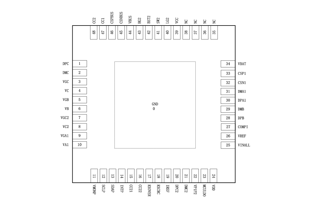 34 | VBAT | 電池電壓或輸出電壓; 在此引腳和地之間毗連一個1μF的電容,盡能夠接近芯片安排 |