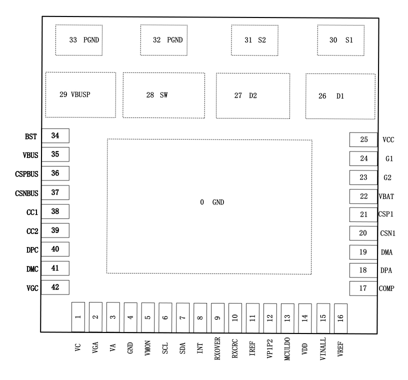 35 | VBUS | 輸入電壓或輸入電壓點,接0.1uF陶瓷電容到PGND,盡能夠接近引腳 |