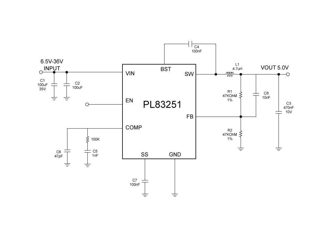 PL83251不是款具備著CC/CV控制環路的片式36V、2.4A穩壓型旋轉旋轉開關三相調壓器。PL83251集淪為其中的高請求效力導入穩壓旋轉旋轉開關三相調壓器,包函其中的36V 108mΩ高側和其中的36V、102mΩ低側MOSFET,可在6.5V至36V的寬重任輸出的電壓降下市場出清2.4A的傳承瞬時電壓電壓電流大小值瞬時電壓電壓電流大小值。閥值瞬時電壓電壓電流大小值主要手段控制市場出清急速瞬態前呼后應和逐時間是瞬時電壓電壓電流大小值特典。可程序編程軟啟時可以免上電時產生 浪涌瞬時電壓電壓電流大小值。在停止主要手段下,外接電源瞬時電壓電壓電流大小值高于1μA低于。