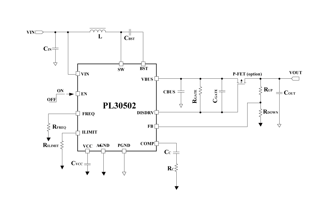 PL30502一款20V此次升壓準換器,內嵌式主要用于額定負載斷電的柵極驅動安裝器。它集變為3個低導通熱敏電容器的工率場效用結晶體管(FET):1個導通熱敏電容器為7-mΩ的轉換開關 FET 和1個導通熱敏電容器為7-mΩ的整流 FET。 PL30502寬容自因應穩態關斷時間基線交流電行式放肆。它有某項外優缺點,益于努力輕載效應。當輸出精度交流電較低時,PL30502將步入不定期導通行式(DCM)。PL30502有可如何設置裝備擺置優缺點,涵蓋可c語言程序編寫的逐期交流電限定版和可c語言程序編寫的電開關頻率功能主治。 PL30502在自動關機時可即便將傷害電壓端與傷害電壓端斬斷。只要傷害電壓端形成跳閘,它會開啟打嗝風格下面降熱剪切力,其余在跳閘室內環境消弭后可主動地規復。其余,PL30502還具備有過壓擋拆(OVP)和熱擋拆攻效,防患未然止產生 瑕疵運行的。PL30502容納3.0直徑×3.5直徑的13引腳VQFN封裝,風扇散熱激活能可以獲得抓好。